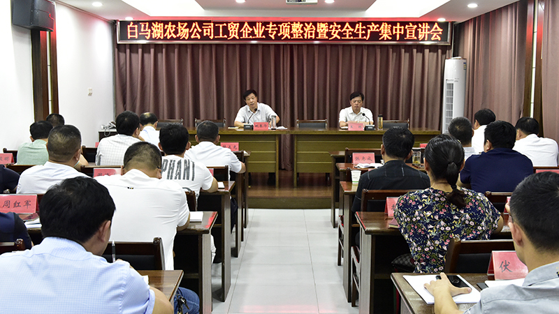 为深入学习贯彻习近平关于安全生产的重要思想和党中央、国务院决策部署,认真落实省、集团公司和地方政府相关要求,扎实推进安全生产专项整治,保证实现安全生产专项整治重点领域宣传教育“全覆盖”,8月27日上午,白马湖农场公司召开工贸企业专项整治专题部署暨安全生产集中宣讲会,由党委书记姚春华作安全生产专题宣讲,并邀请淮安区应急管理局副局长陈华昌作安全生产专项整治专题部署。