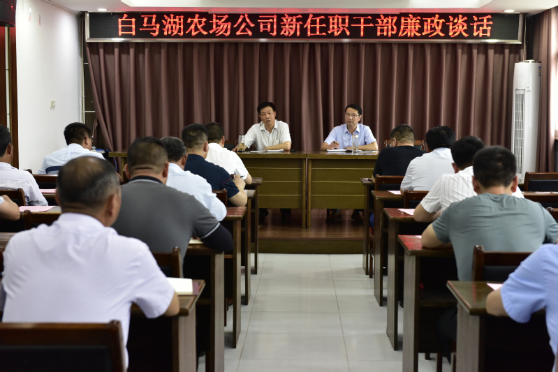为切实落实全面从严治党主体责任,提高新任职干部对党风廉政建设重要性的认识,筑牢新任职干部廉洁自律的防线,7月2日下午,白马湖农场公司对40多名新提拔或岗位调整任新职干部开展集体廉政谈话,党委书记姚春华、纪委书记韩跃武分别进行谈话。